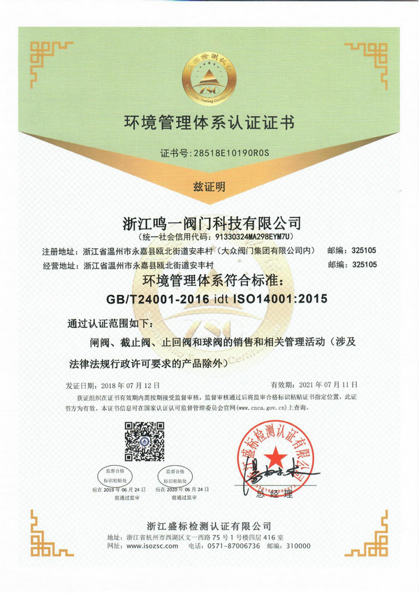 The product name:Certification of environmental management system