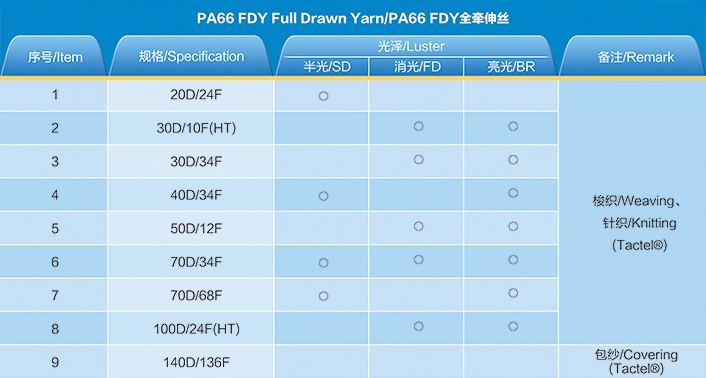 l.High tenacity:PA66 can be applied in parachute,military and special field.Thetenacity can reach above 7.0g/d which is20-50% higher than same specification in PA6: