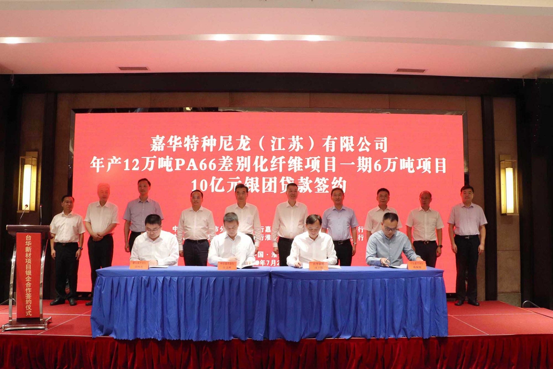 7月21日,在江蘇省淮安市,臺華新材與中國銀行、工商銀行、建設銀行、民生銀行等7家金融機構組成的銀團簽訂貸款協議書,總授信金額28億元,支持臺華新材綠色多功能錦綸新材料一體化項目(一期)的建設。