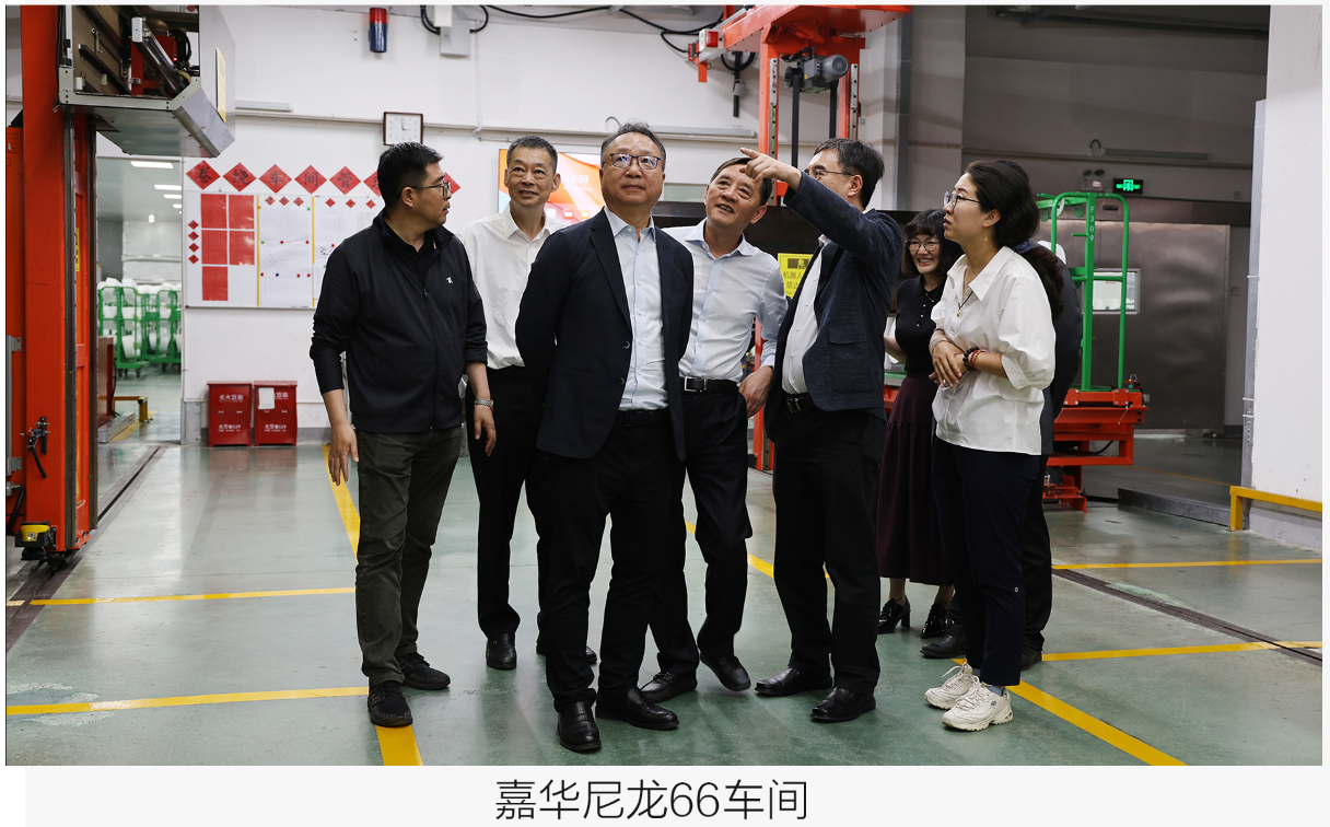 孫會長參觀了我司的紡織織布車間、染整二期車間及嘉華尼龍66車間,孫會長對我司產業鏈協同發展表示充分的肯定和贊揚。